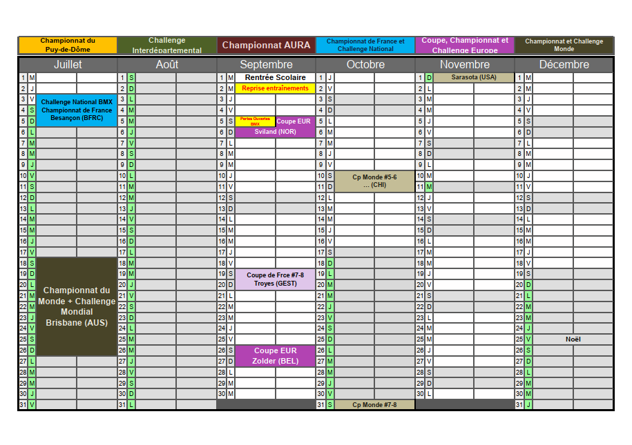 Calendrier compétitions 2025