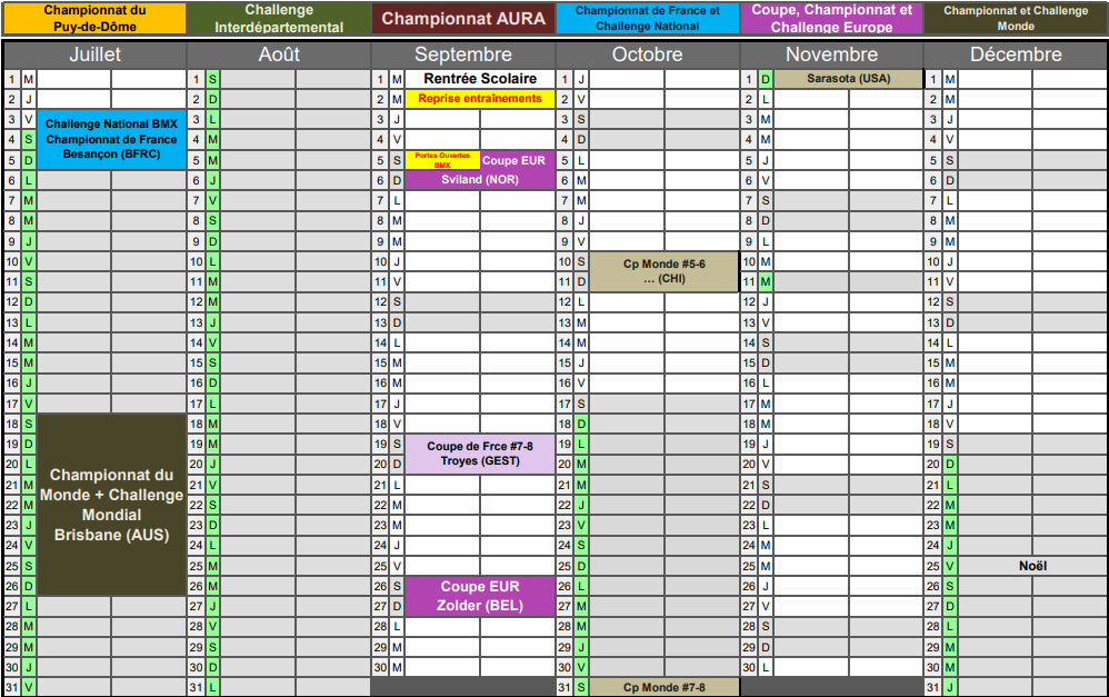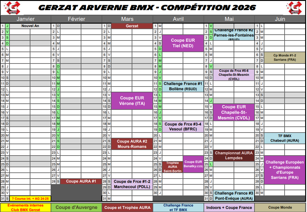 Voici la 1ère version du calendrier 2026 qui comprend toutes les compétitions à venir jusqu’au niveau AURA, le calendrier des compétitions pour l’Auvergne sera publié en décembre 2025.